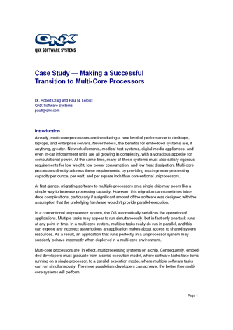 Already, multi-core processors are introducing a new level of performance to desktops, laptops, and enterprise servers. Nevertheless, the benefits for embedded ...