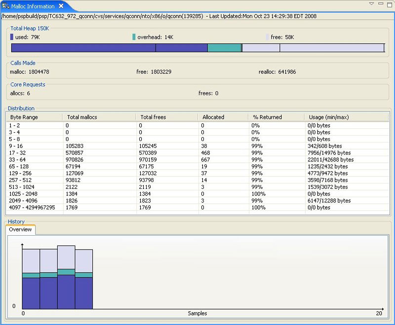 The QNX® Momentics® Tool Suite system profiler works in concert with the instrumented kernel to provide insight into the operating system's events and activities. Like the application profiler, the system profiler can help pinpoint areas that need improvement at a system-wide level: